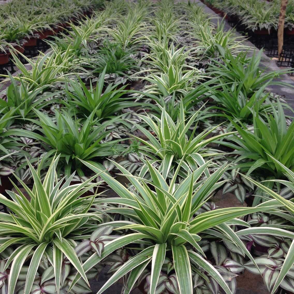 金边吊兰,吊兰的一种,种植方法和其它吊兰一样。 吊兰,百合科,多年生常绿草本植物。叶片呈宽线形,嫩绿色,着生于短茎上,具有肥大的圆柱状肉质根。总状花序长30-60厘米,弯曲下垂,小花白色;常在花茎上生出数丛由株芽形成的带根的小植株,十分有趣。它生长快,栽培容易,在较明亮的房间内可常年栽培欣赏。是悬吊或摆放在橱顶或花架上最适宜的种类之一。